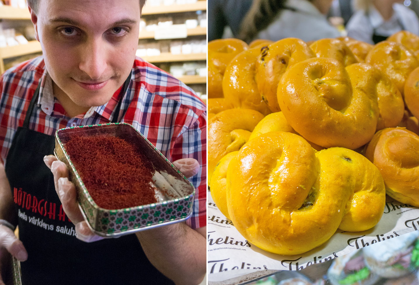 Ett hett tips är att köpa lite iransk saffran och baka egna persiska lussekatter. Om du inte orkar göra egna finns det förstås att köpa färdiga på flera ställen i Hötorgshallen, till exempel hos Thelins i Hötorgshallen (bild t.h.).